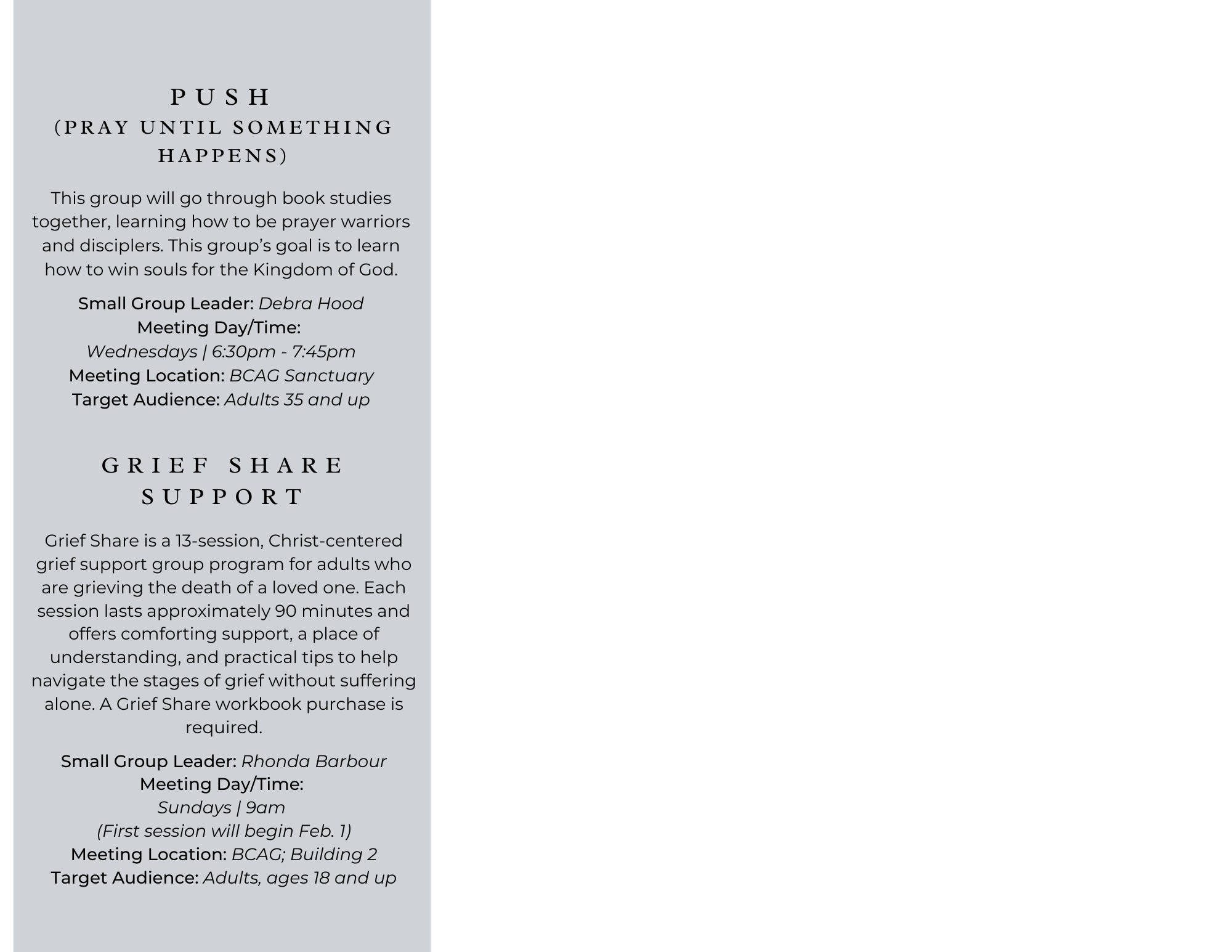 Current Small Group Offerings